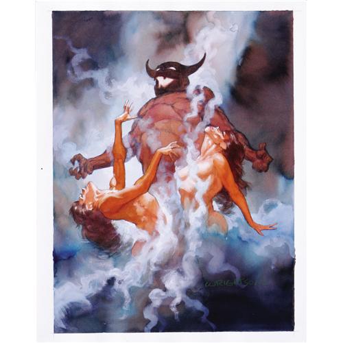<B>Bernie Wrightson - Demon with Two Nubile Women Fantasy Painting Original Art (undated).</B></I> This beautifully rendered painting, done in watercolor on paper, is a striking example of Bernie Wrightson's unparalleled talent for the horror/fantasy genre. Wrightson's mastery of composition, shading, and color mesmerize the viewer. One of a handful of artists that defined the Bronze Age in comicdom, many consider Wrightson to be among the finest artists ever to work in comics. This painting is in Excellent condition and has an image area that measures 10" x 13.5".<BR><BR><b>Shipping:</b> Small Flat (<a target="_blank" href="http://www.heritageauctions.com/common/shipping.php">view shipping information</a>)