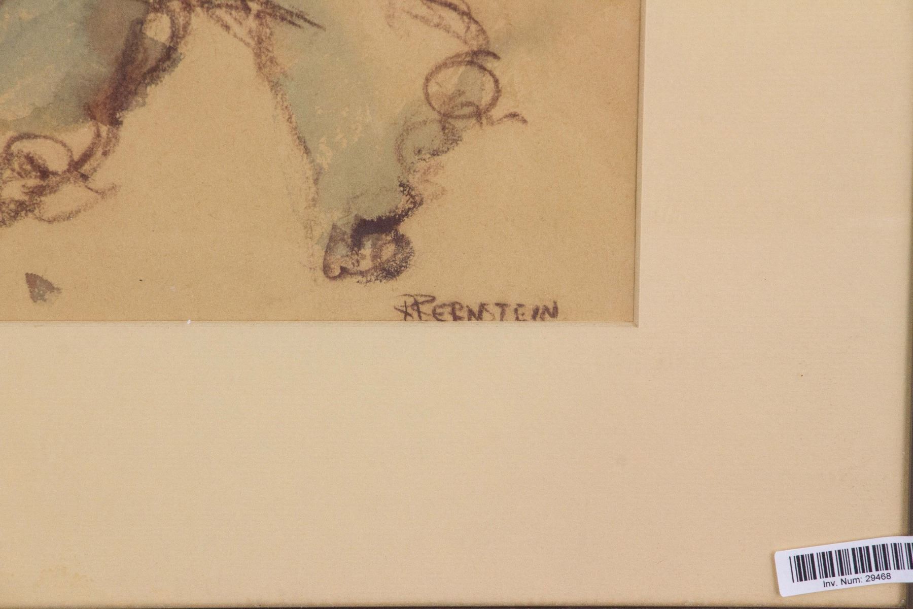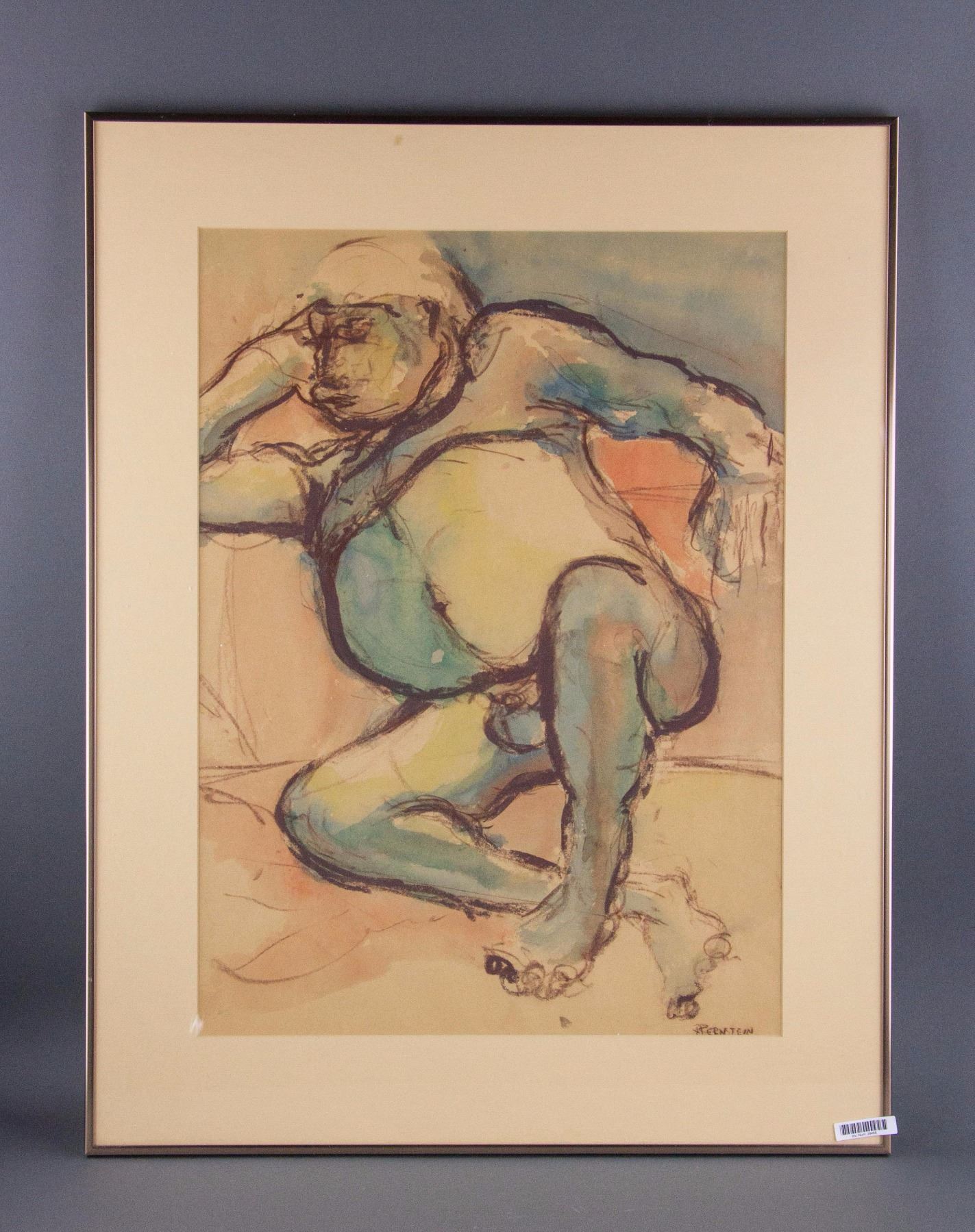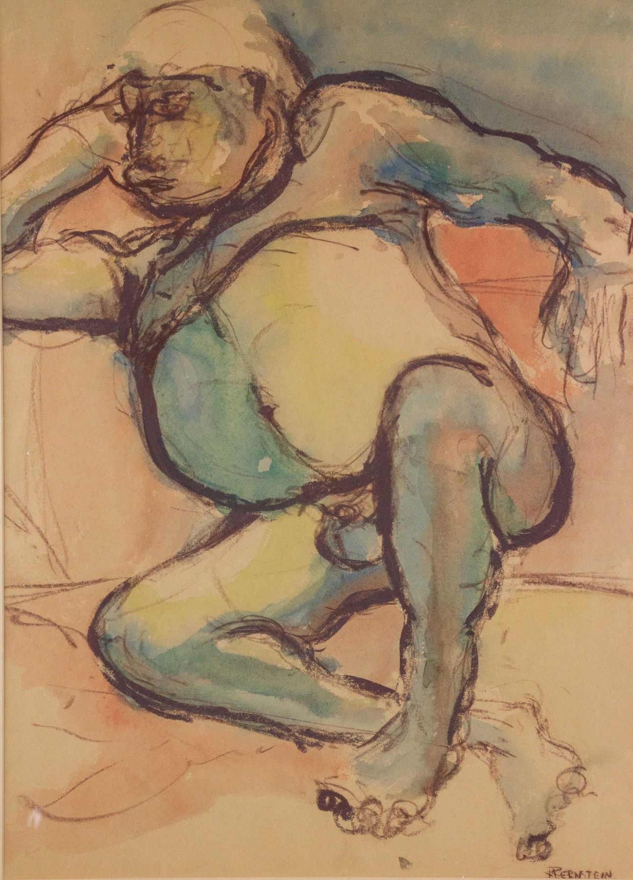 Painting of a lying naked man; watercolour on paper; framed; signed Bernstein on front; Canadian artist; 22.5 inches x 16.5 inches