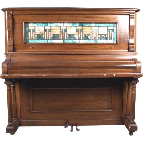 Berrywood Model "C" Upright Nickelodeon Mahogany Cabinet and Original Stained Glass Panels