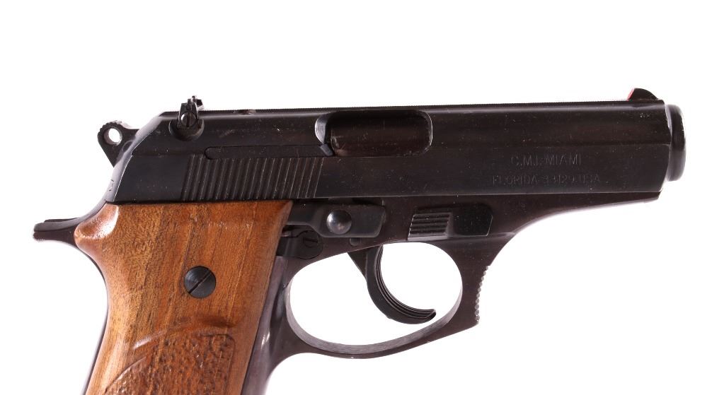For your consideration is a Bersa Model 85 .380 ACP caliber pistol. This wonderful compact pistol utilizes a 3 ½” round barrel. The Bersa 85 is a high-capacity variant of the more known Bersa 83 that was manufactured from 1989 to 1994. The Model 85 was able to accommodate a 13-round magazine of .380 ACP. The slide is marked on the left “Bersa S.A. Ramos Mejia Argentina Mod. 85 Cal. .380 ACP” and on the right “C.M.I. Miami Florida 33129 U.S.A.” This pistol shows very good condition retaining the original hardwood grips with Bersa Medallions inlaid in the stippling. Serial Number: 225354. This firearm qualifies as a Curio & Relic, and requires FFL Transfer or NICS Background Check.