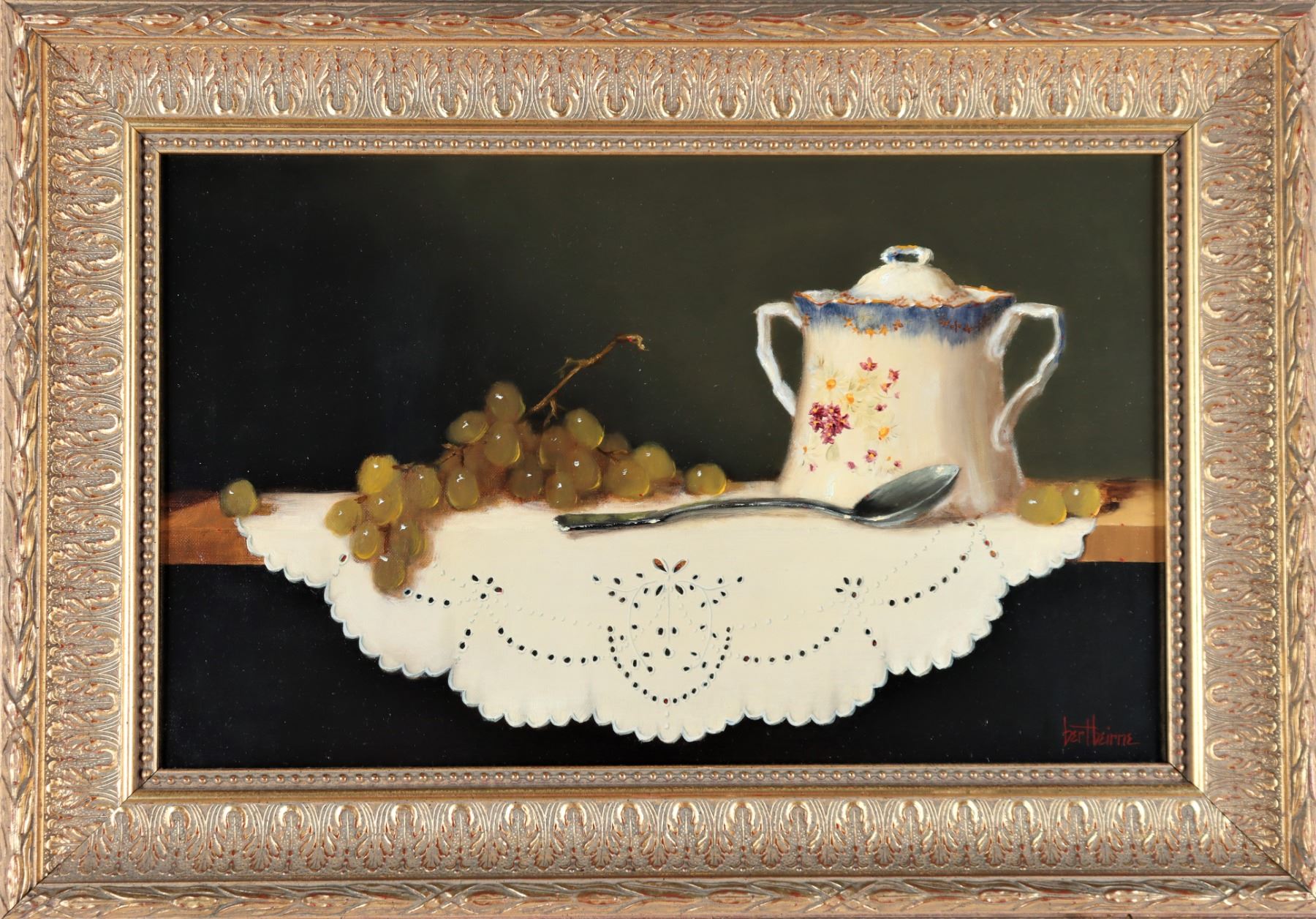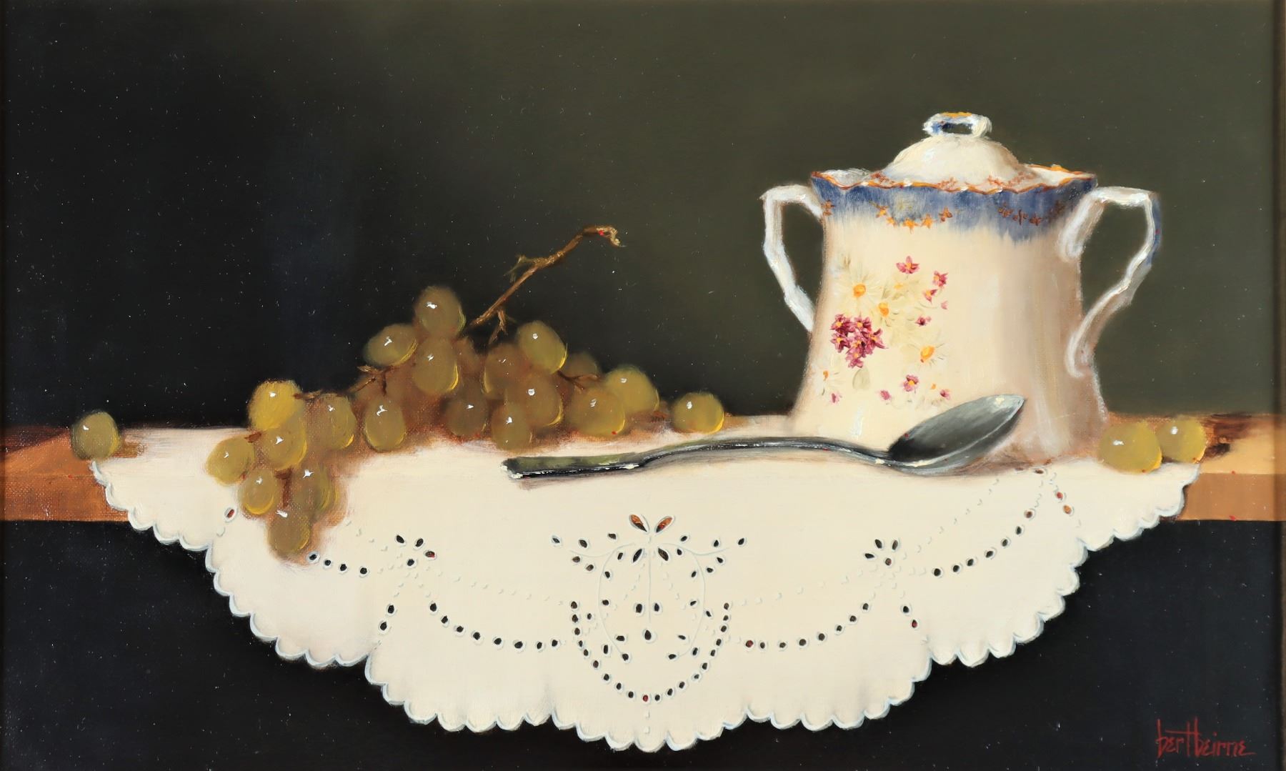 A native of Cincinnati, Bert chooses her subjects from a variety of materials and textures--Madeira lace, Persian rugs, metal , porcelain, glass, fruit, leather, wood, shellfish, sheet music.