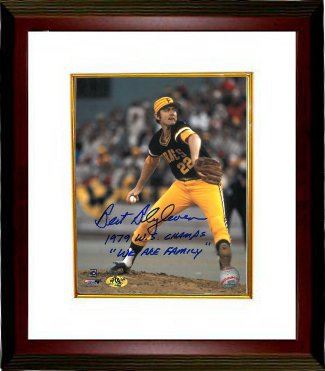 Bert Blyleven is a former pitcher who played from 1970 to 1992, and was best known for his curveball. He was drafted straight out of high school by the Minnesota Twins in the third round in 1969, where after only 21 minor league starts he found himself called up to the Majors at age 19 on June 2, 1970. In his first season, his sharp curveball helped him to ten victories and he was named AL Rookie Pitcher of the Year by The Sporting News. Blyleven was inducted into the Baseball Hall of Fame in 2011. The wildly popular disco hit "We Are Family" by Sister Sledge was used as the team's theme song that season. Bert Blyleven has hand signed this Pittsburgh Pirates 8x10 Photo with 1979 W.S. Champs and "We Are Family" inscriptions. MAB Hologram and Certificate of Authenticity from Athlon Sports. Custom White Mat and Premium Mahogany Frame as shown.