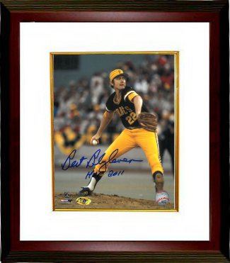 Bert Blyleven is a former pitcher who played from 1970 to 1992, and was best known for his curveball. He was drafted straight out of high school by the Minnesota Twins in the third round in 1969, where after only 21 minor league starts he found himself called up to the Majors at age 19 on June 2, 1970. In his first season, his sharp curveball helped him to ten victories and he was named AL Rookie Pitcher of the Year by The Sporting News. Blyleven was inducted into the Baseball Hall of Fame in 2011. The wildly popular disco hit "We Are Family" by Sister Sledge was used as the team's theme song that season. Bert Blyleven has hand signed this Pittsburgh Pirates 8x10 Photo with HOF 2011 inscription. MAB Hologram and Certificate of Authenticity from Athlon Sports. Custom White Mat and Premium Mahogany Frame as shown.