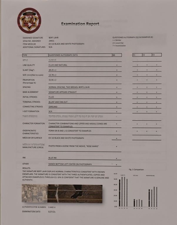 Bert Lahr signed movie photo. 8x10 inches. GFA Authenticated. Bert Lahr is best known as the Cowardly Lion from The Wizard of Oz. HL10925