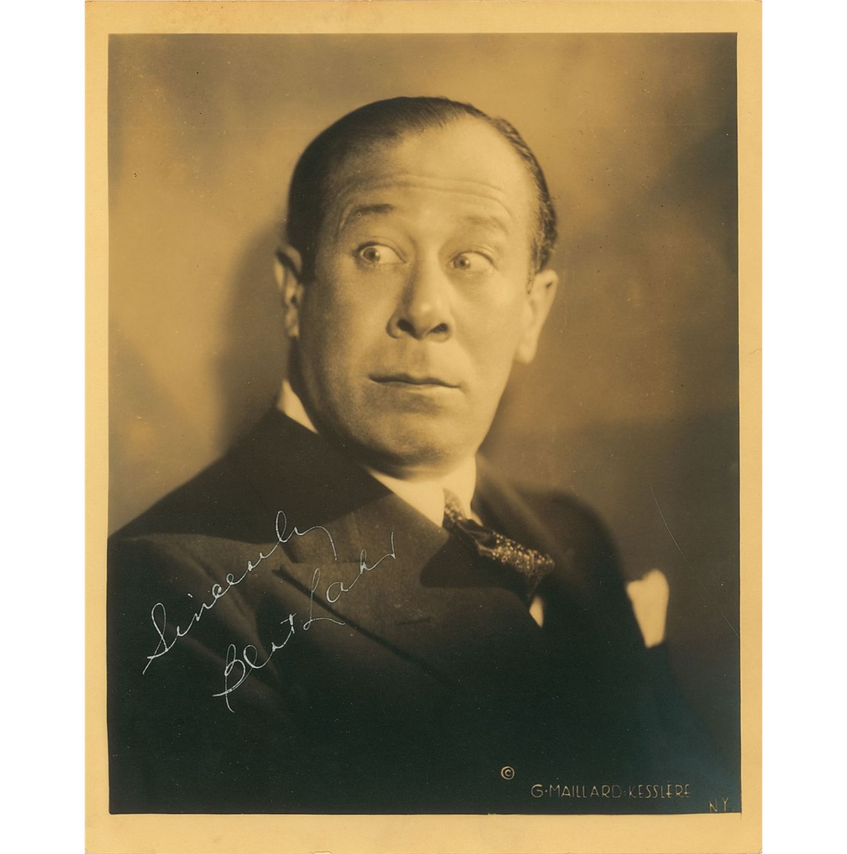 Quaint vintage sepia matte-finish 8 x 10 photo by G. Maillardm Kesslere, signed in white ink, “Sincerely, Bert Lahr.” In fine condition, with some mild rippling and silvering along right edge.