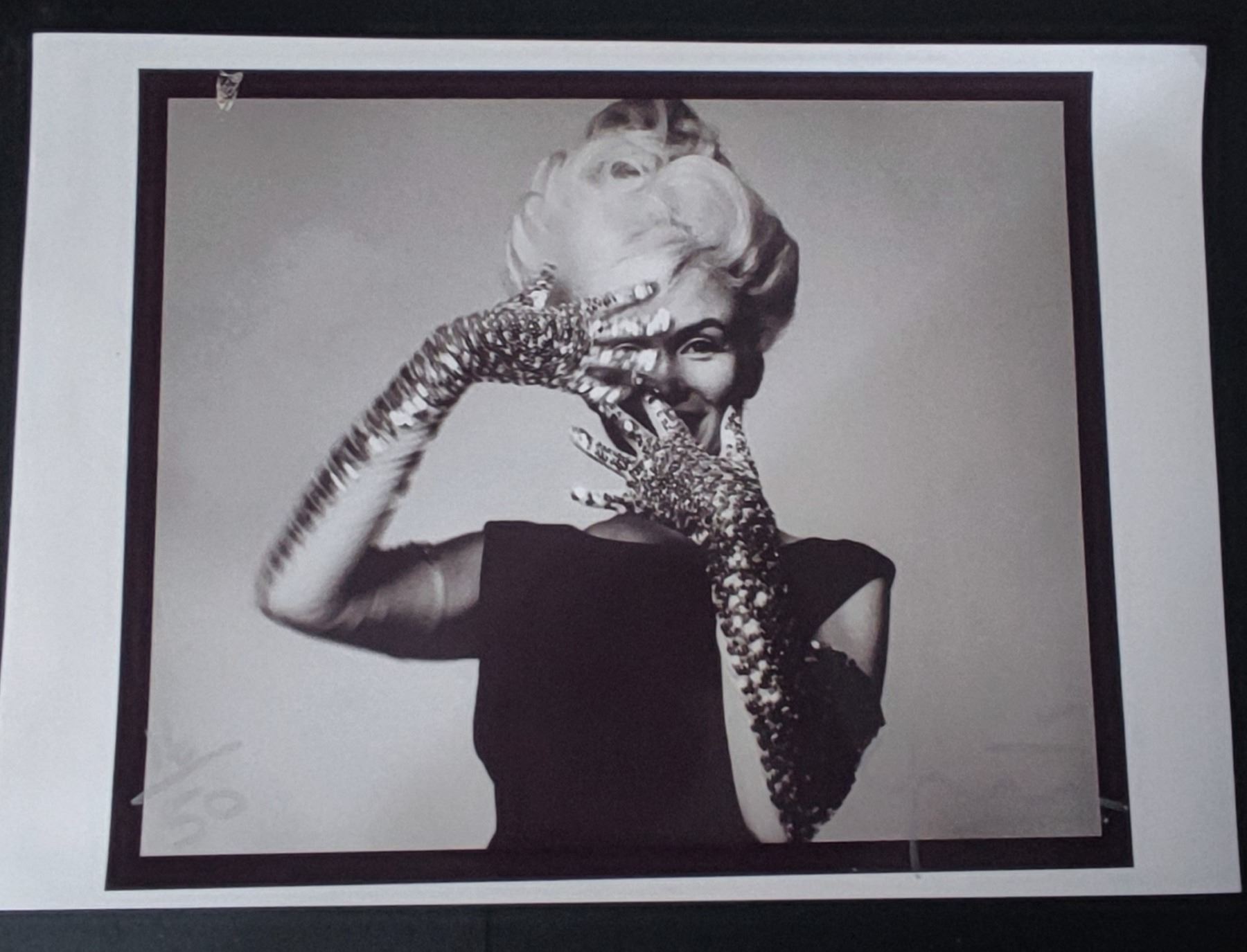 'Marilyn with sequin gloves' later glossy print. Signed by photographer Bert Stern.