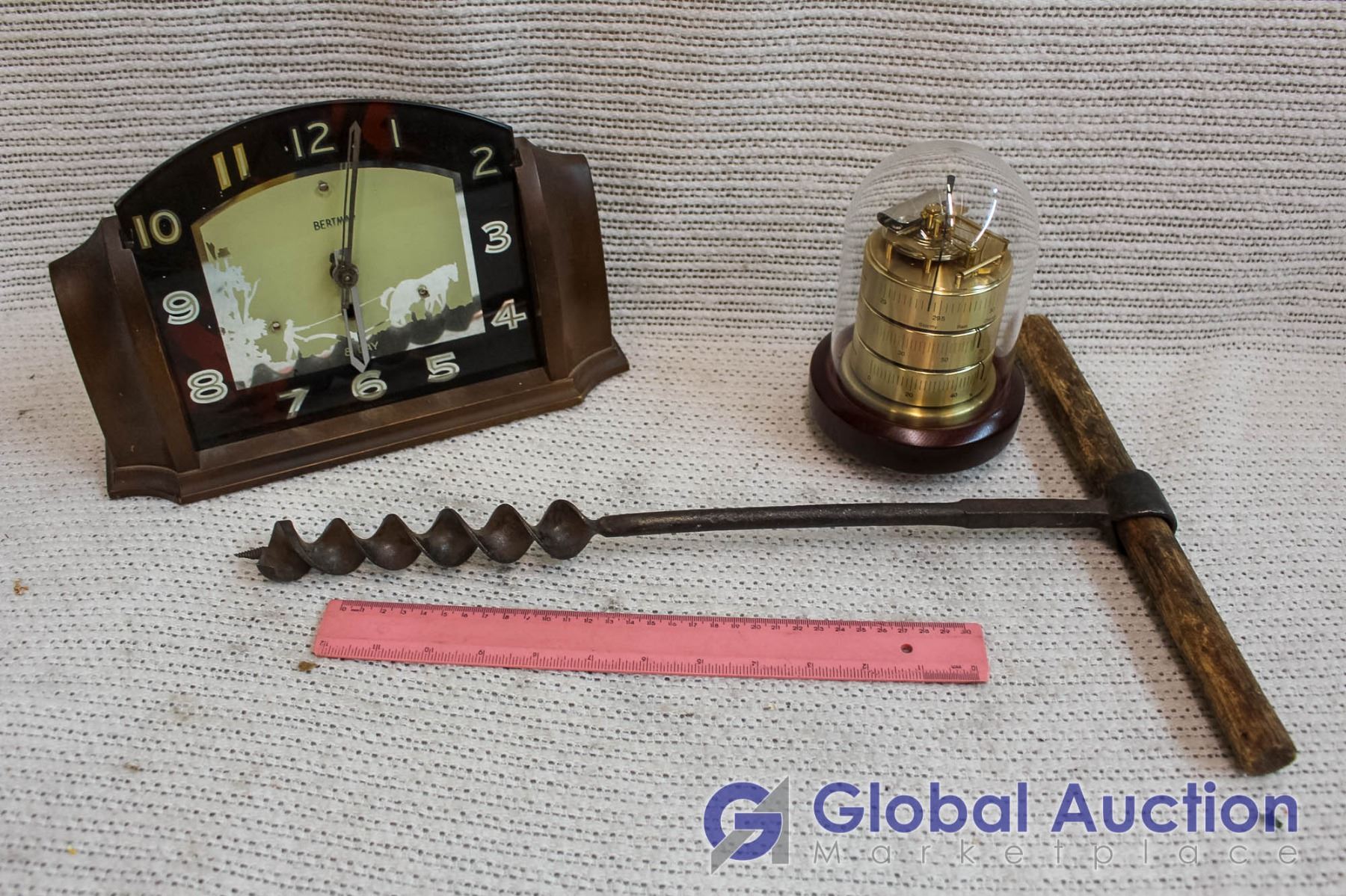 Bertmar Clock, Combo Barometer Thermometer, And Hand Drill