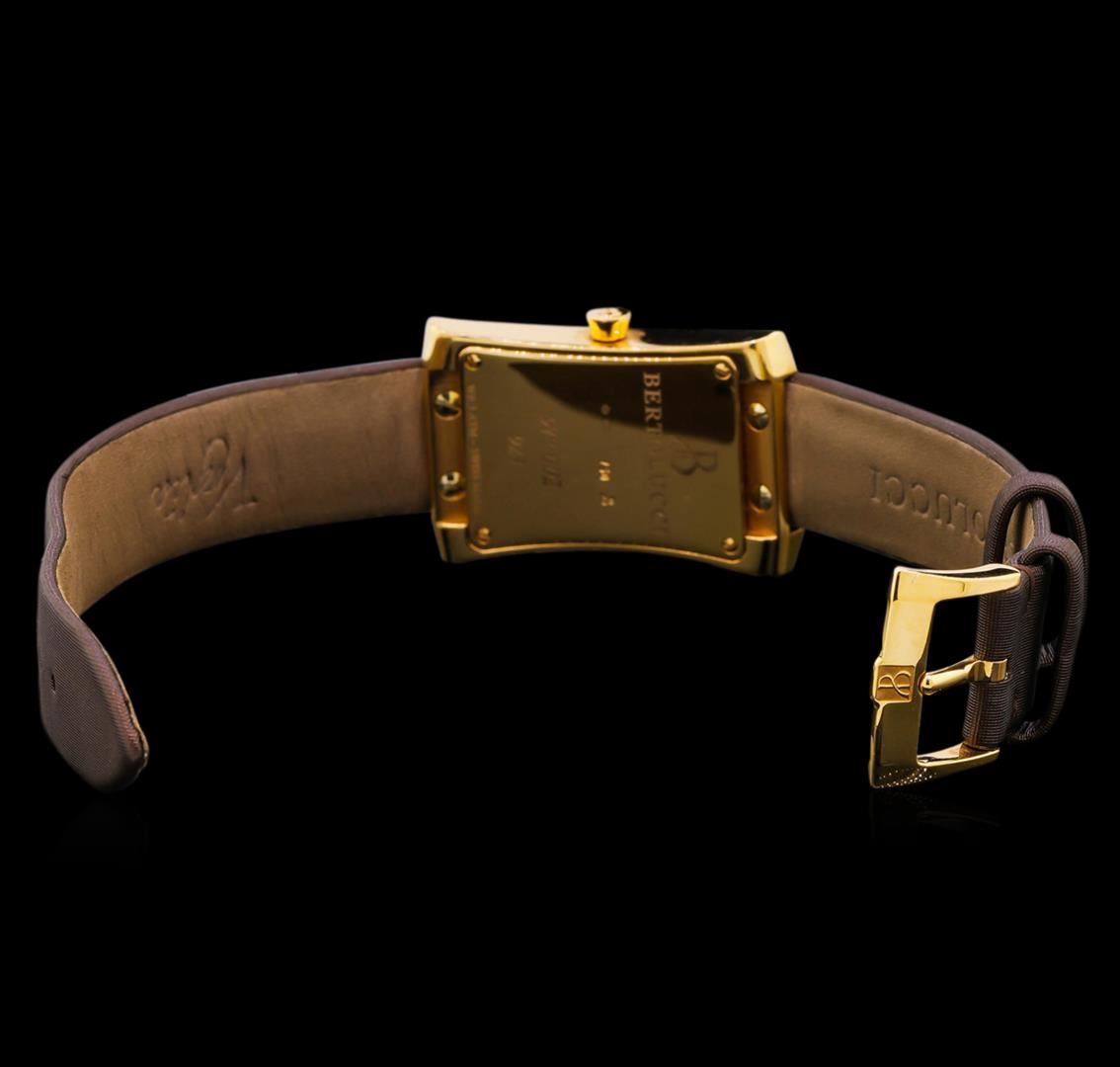 One Bertolucci watch featuring: Case: 18KT rose gold set with diamonds. Dial: Brown color. Bracelet: Bertolucci strap with 18KT rose gold buckle clasp.