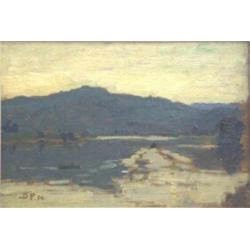 Bertram Priestman (1868-1951)Oil on wooden panel,Lake with hills beyond,Initialled and dated '10,7 x 10.5 ins. £700-1,000