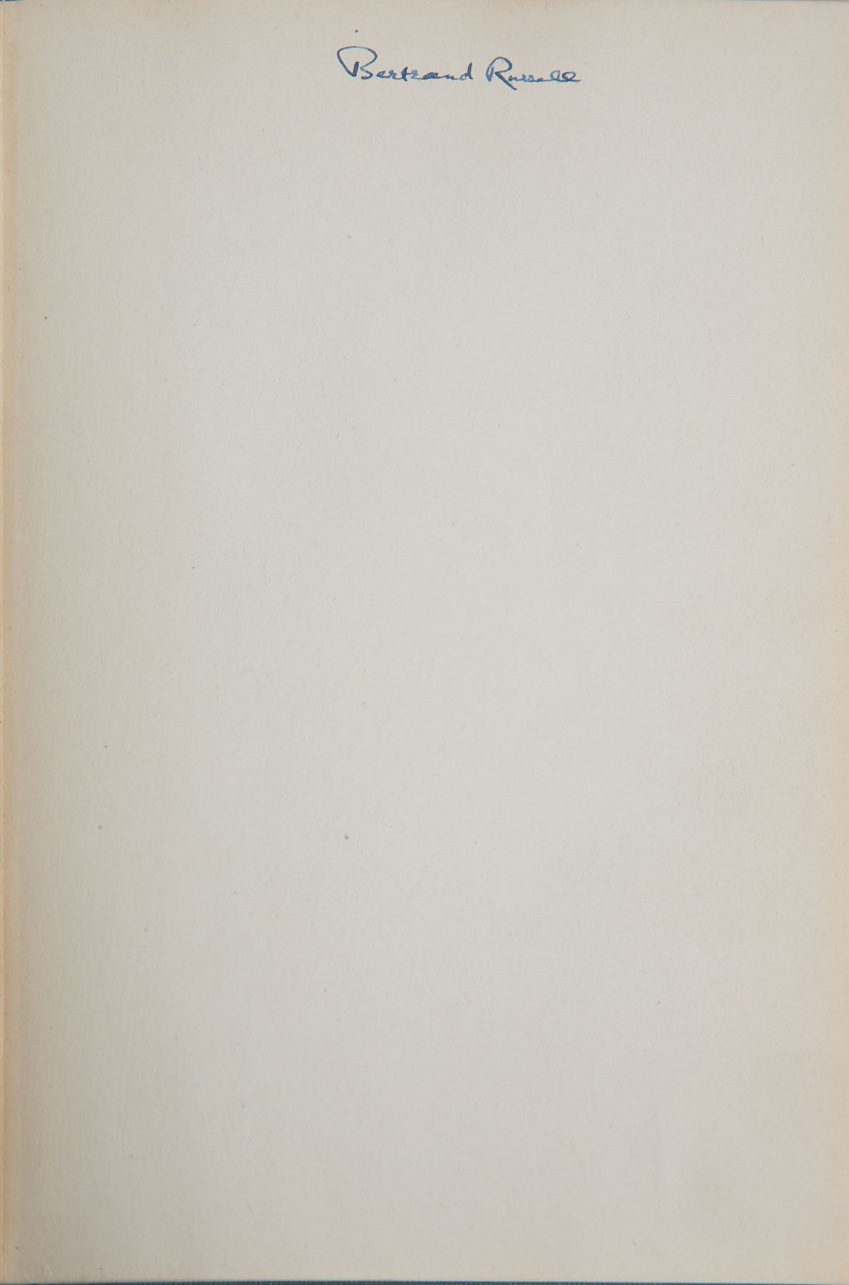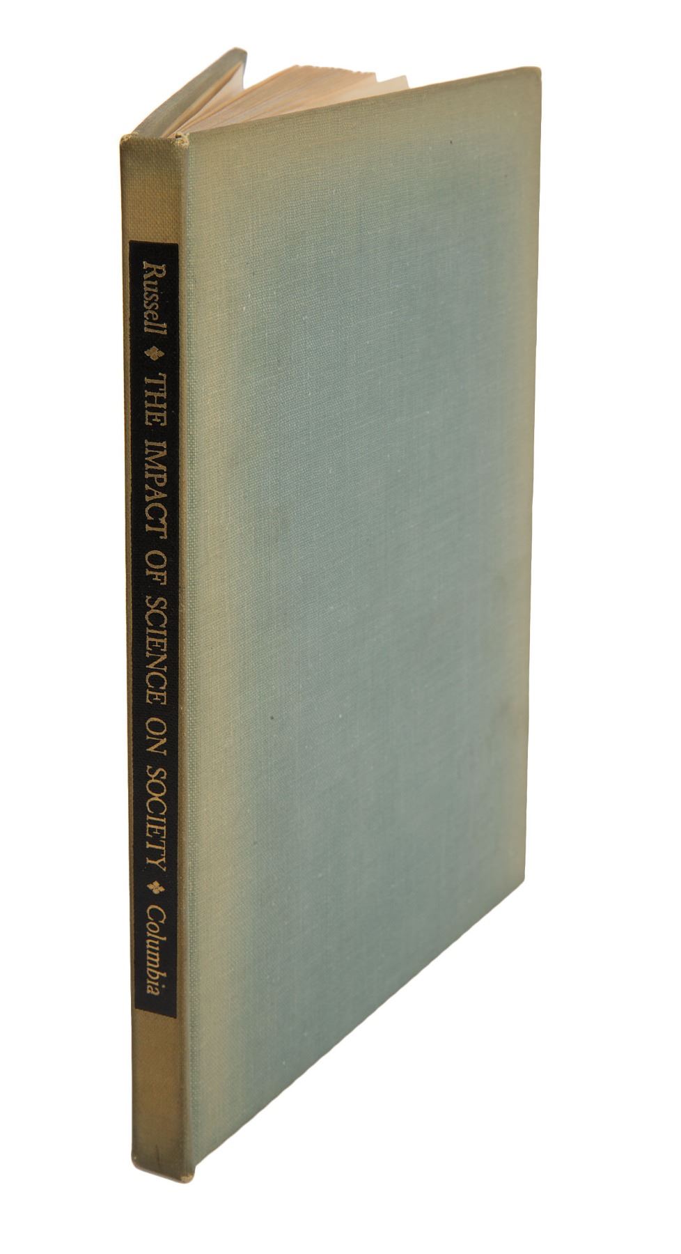 Signed book: The Impact of Science on Society. First edition. NY: Columbia University Press, 1951. Hardcover, 5.5 x 8.25, 64 pages. Signed on the first free end page in fountain pen by Russell. In fine condition, with sunning to the spine and cover edges.