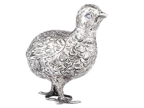 Silver, 90 g. Quail form condiment holder. Marked: German, 800 fineness, late 19th century. Size: 9 cm