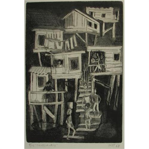Bess, Etching, "Favela-Rio", #9/75, 1965, image size 11 1/2" x 7 3/4", pencil signed