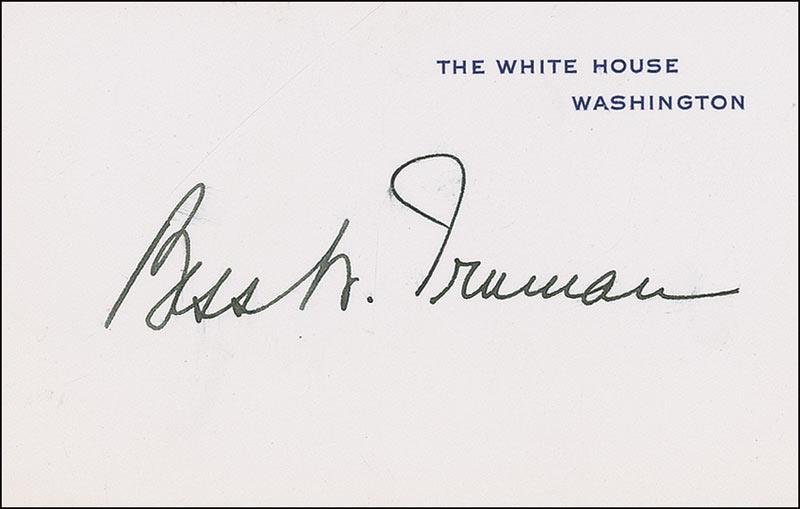 Signed White House card, neatly signed in black ink, “Bess W. Truman.” In fine condition.