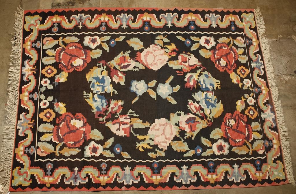 Large floral pattern with fringe, measures 5.1'x6.8'.