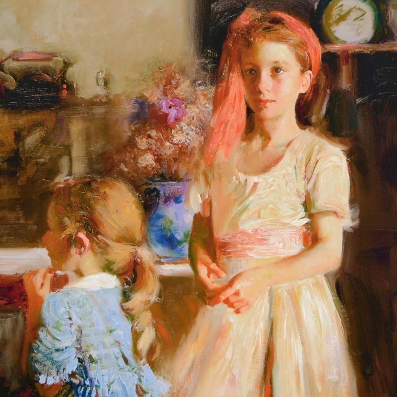 "Best Friends" is a limited edition giclee on stretched canvas that has been hand-embellished by Pino himself, AP Numbered and Hand signed by Pino (1939-2010). Includes Certificate of Authenticity. Measures approx. 32" x 40" (image).