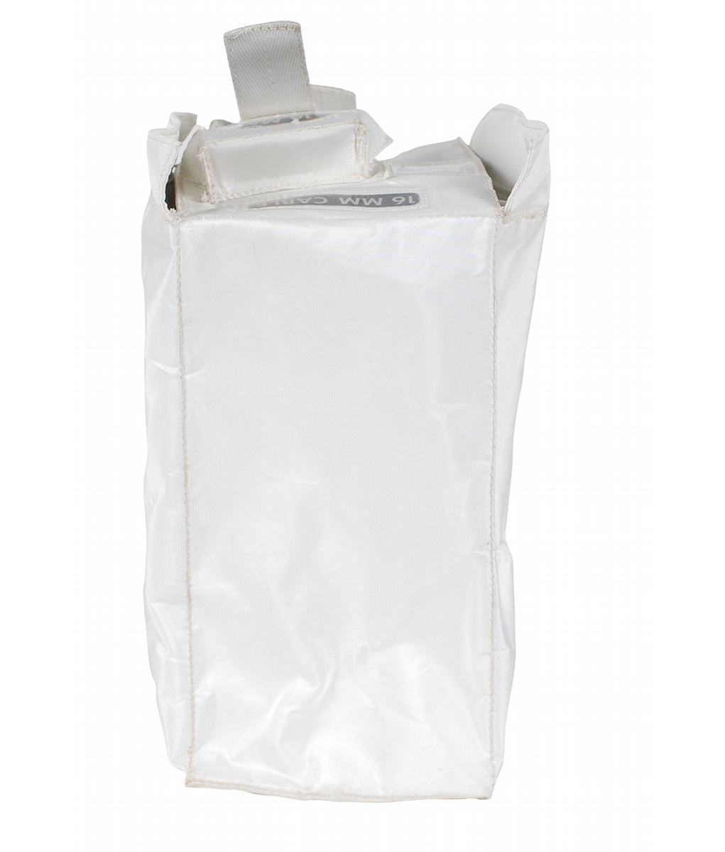 Beta cloth pouch to be utilized for storing accessories of the 16mm Maurer Data Acquisition Cameras (DAC), 5 x 9 x 3.5, stenciled on the reverse with very light red part numbers. The top flap of the pouch identifies the equipment each of the three separate compartments is designed to hold, including the “16 MM Cable,” “16 MM Cam Adap,” and “16 MM Spare Fuses.” In fine condition. The 16mm Maurer Data Acquisition Camera is best known for the movies it was used to take through the LMP's window during the approach and landing of the Lunar Module. Movie footage taken on the lunar surface was also shot by the Maurer cameras, and they were utilized in various scenarios depending on the mission, including stop motion photography of the Apollo 11 EVA as seen through the LMP’s window and documenting the geology encountered on the Lunar Roving Vehicle during the later missions. A desirable Apollo-related photographic accoutrement.