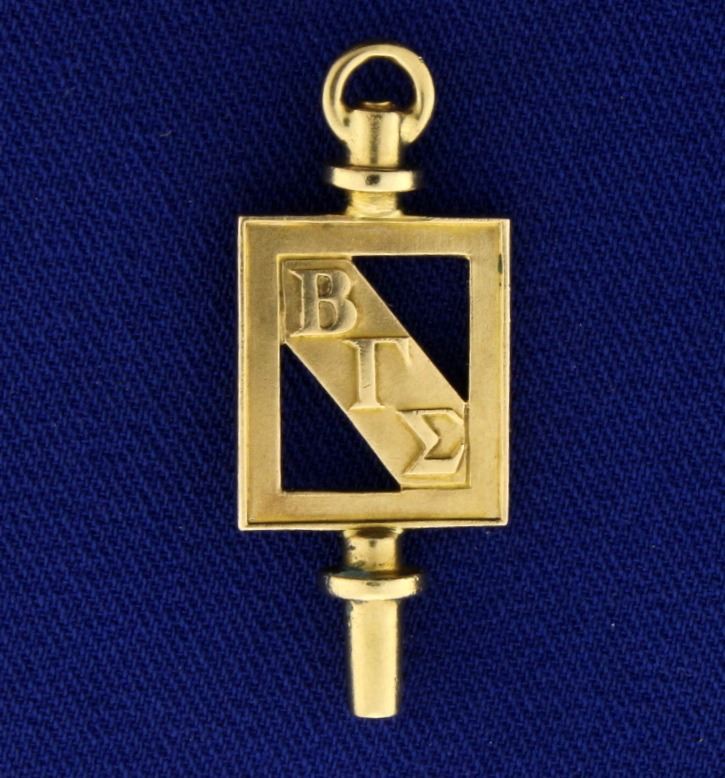 In 10k yellow gold. Approx. 1-1/4" x 9/16". 4.4g
