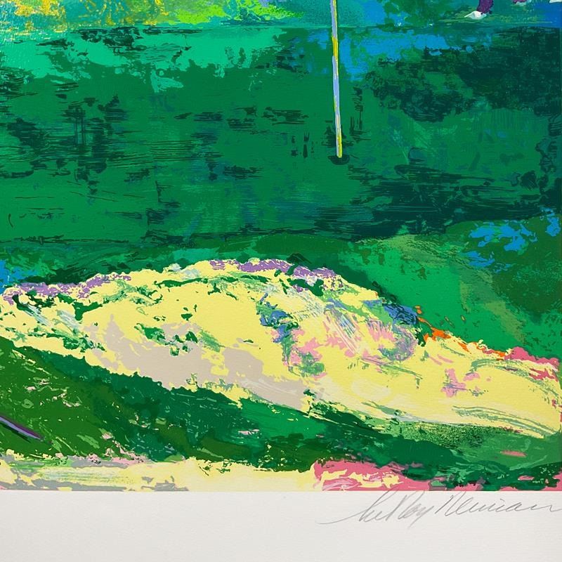 "Bethpage Black Course 2002 US Open" is a limited edition serigraph on paper by LeRoy Neiman (1921-2012), numbered 246/350 and hand signed by the artist. Includes Letter of Authenticity. Measures approx. 34" x 42.5" (border), 28" x 35.5" (image). Due to the age of this piece there are minor creases in the white border area that will be concealed when the piece is framed.