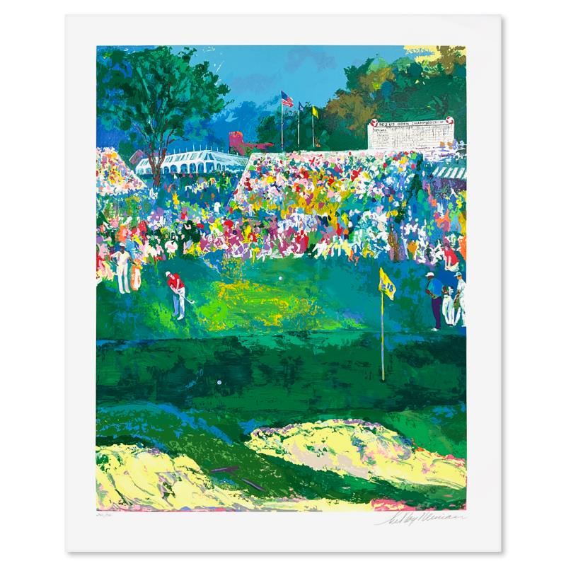 "Bethpage Black Course 2002 US Open" is a limited edition serigraph on paper by LeRoy Neiman (1921-2012), numbered 246/350 and hand signed by the artist. Includes Letter of Authenticity. Measures approx. 34" x 42.5" (border), 28" x 35.5" (image). Due to the age of this piece there are minor creases in the white border area that will be concealed when the piece is framed.