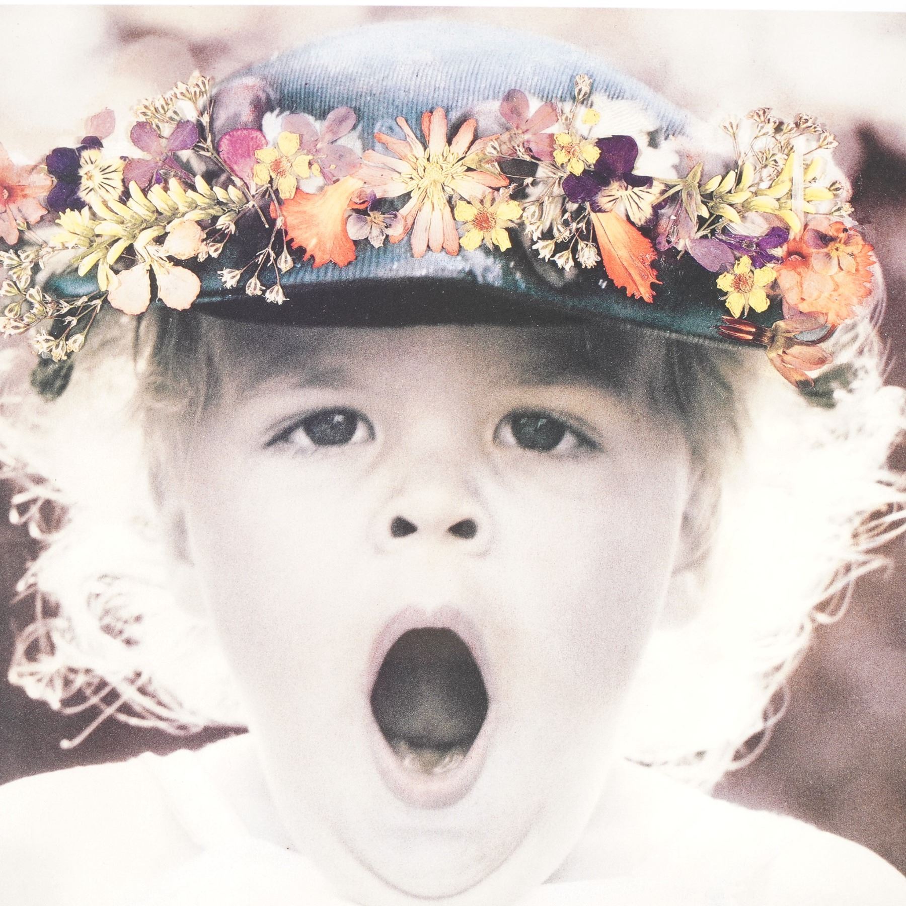 This charming photographic poster print by Betsy Cameron, titled Oh My!, captures the innocence and expressive wonder of childhood. The image features a young girl with curly blonde hair wearing a denim hat adorned with vibrant artificial flowers, her mouth open in a candid and whimsical moment of surprise. This poster exemplifies Cameron's signature style-soft-focus portraiture with selective hand-tinting that enhances both the nostalgic and emotional appeal. Originally copyrighted in 1990, this example is a second printing from the same year, issued by Bruce McGaw Graphics and printed in the USA. Known for celebrating the purity and magic of childhood, Cameron's work has remained a favorite among collectors of sentimental photography and 1990s Americana. Signed in the plate.