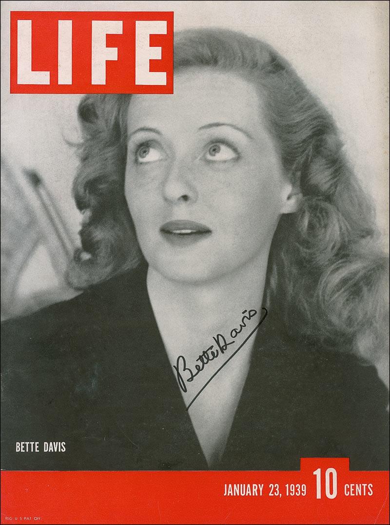 Complete January 23, 1939, issue of LIFE magazine featuring an image of Davis on the cover, signed in black felt tip. Mild toning and a touch of handling wear, otherwise fine condition.