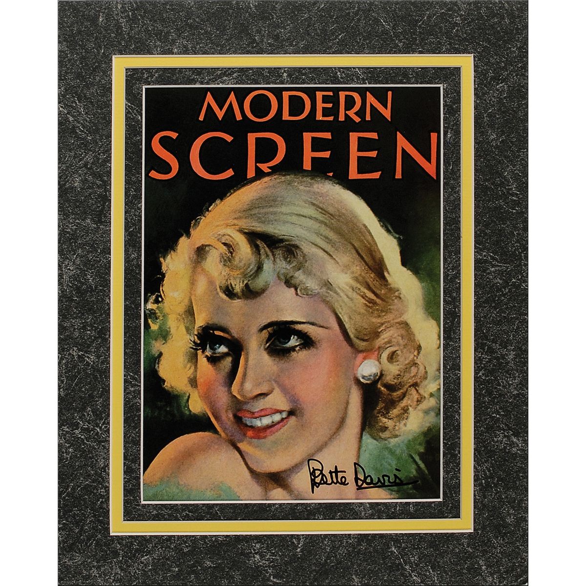 Modern Screen magazine cover featuring an image of a young, blonde Davis, 7.5 x 10.5, signed in black felt tip. Triple matted to an overall size of 12 x 15. In fine condition.
