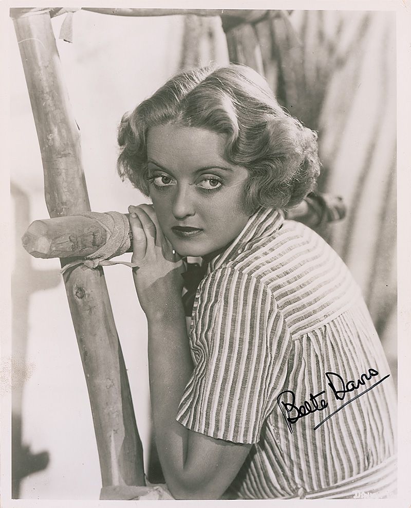 Glossy 8 x 10 photo of a young Davis on a ladder, signed in black felt tip. In fine condition, with some scattered light creases and surface marks.