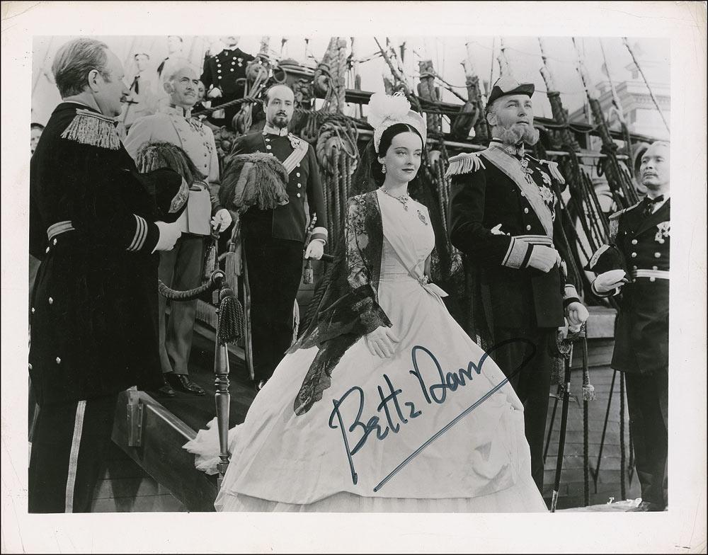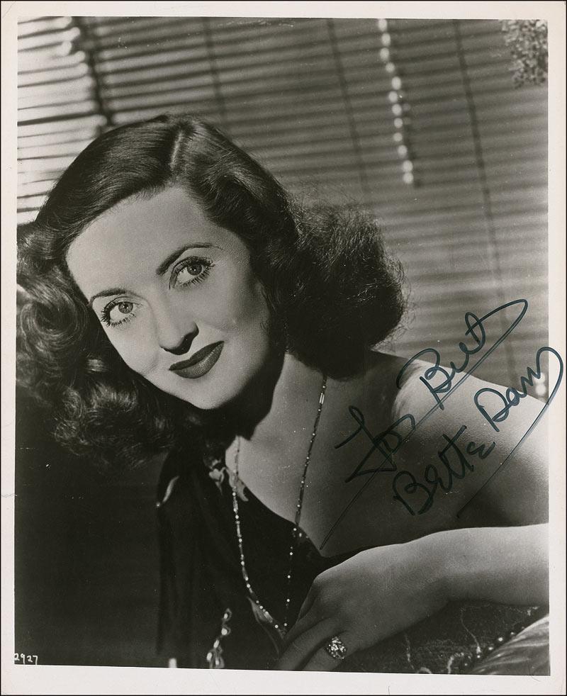 Two glossy photos, one 8 x 10 signed and inscribed in black felt tip, “For Bill, Bette Davis” and one 10 x 8 signed in black felt tip, “Bette Davis.” Light handling wear, faint surface scratches, a bit of edge toning and somewhat heavier edge creasing to the second photo, otherwise fine condition.