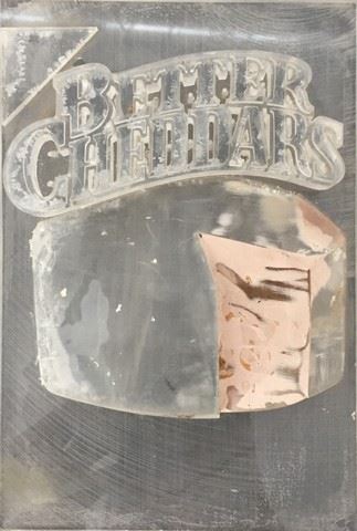 Original (positive type) mold in the making of the commercial for Better Cheddar snack food. Comes from the collection of Richard Defino. Also included is a letter of provenance from Richard Defino who is an Academy Award winning effects artist and Emmy winning lighting technician. He was the foreman at Gene Young Effects and worked on many amazing, iconic movies and commercials as well as special government projects and private industry and museums. (10x11)