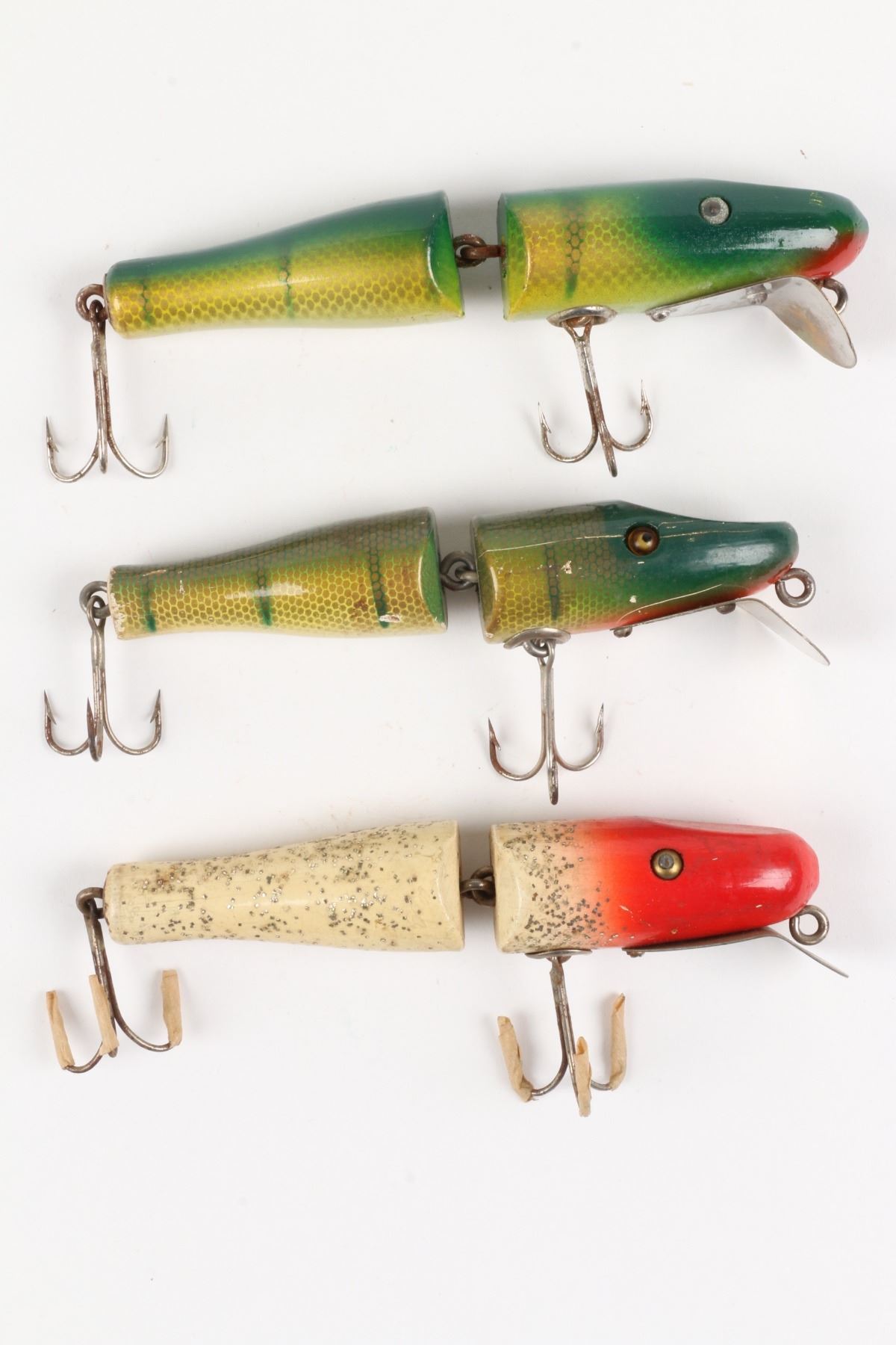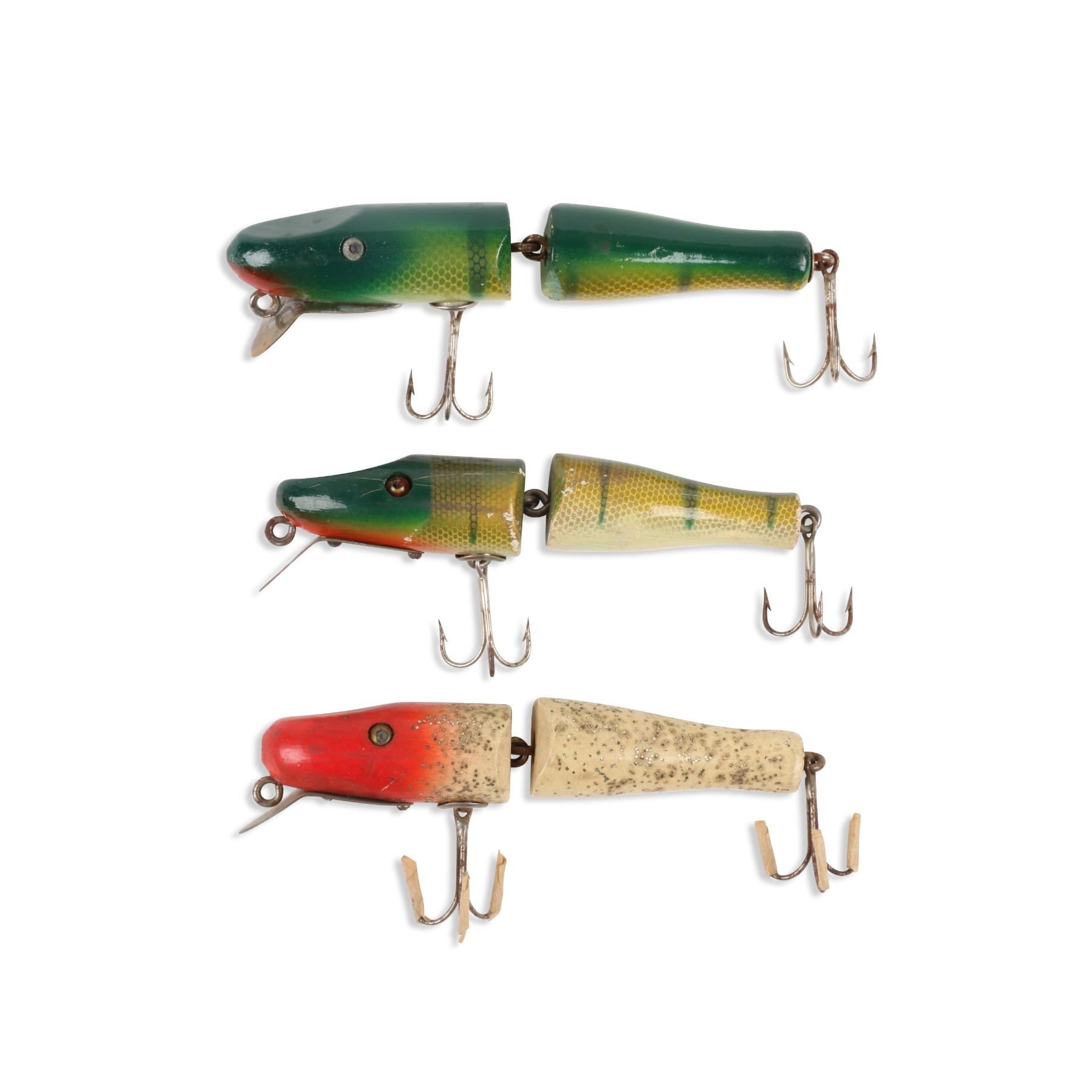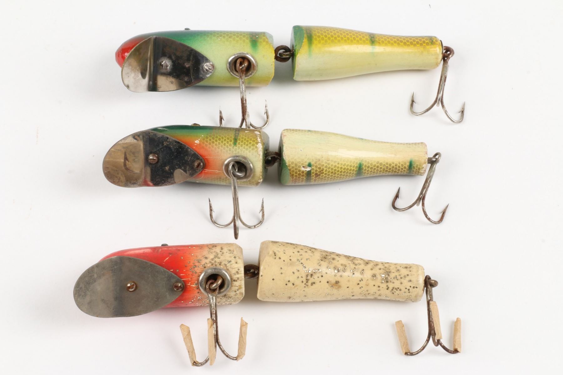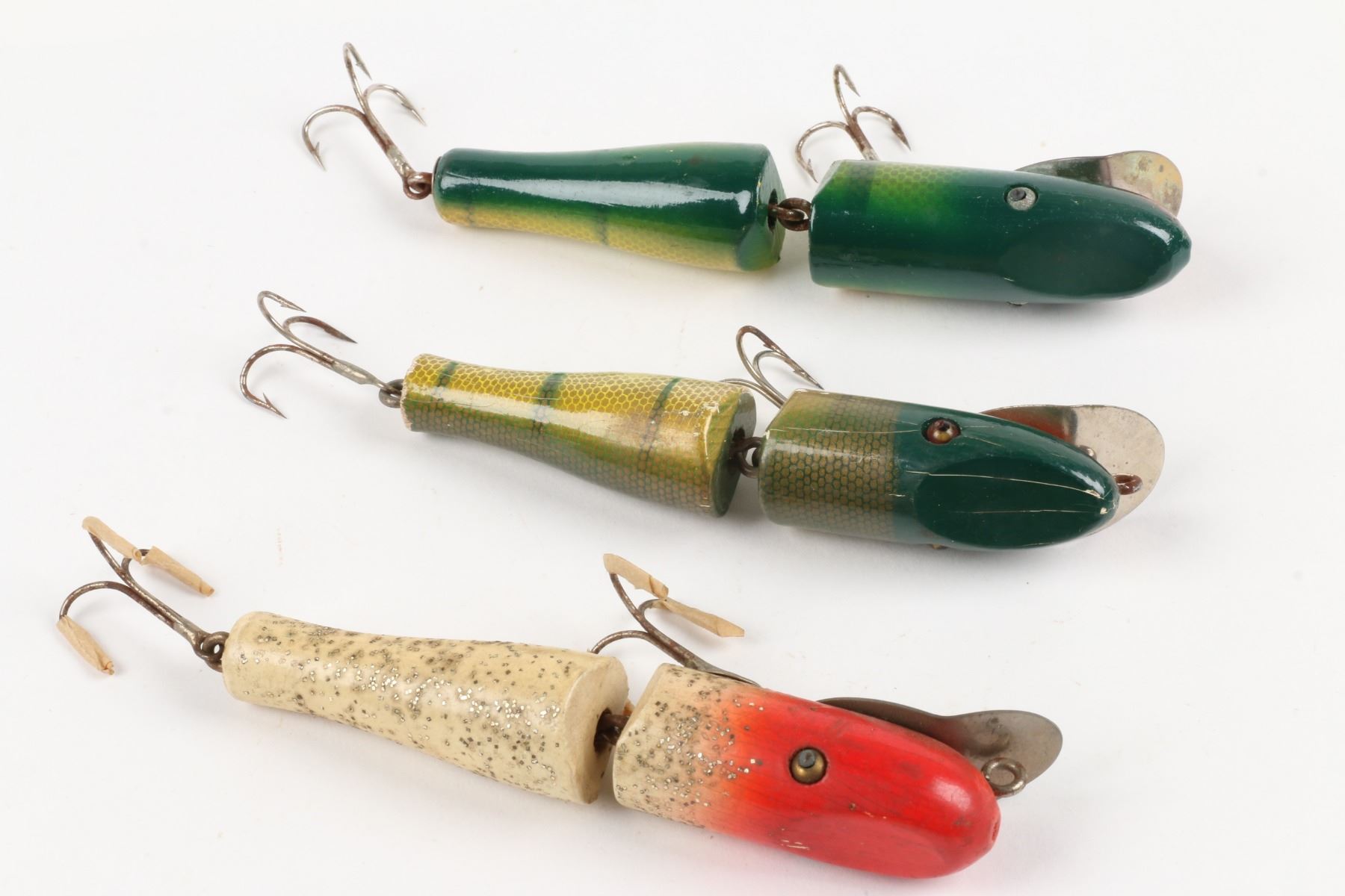 Lucky Strike Bait Works, Canada. 1930s. Material: Wood. Quantity: 3. Grade: VG-. 4.75" Est. $100-125.