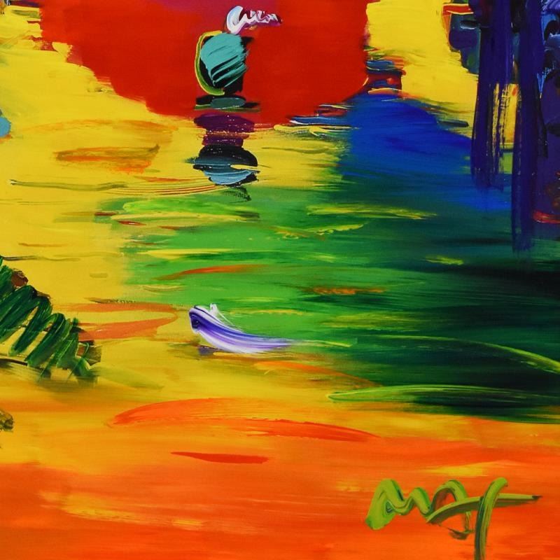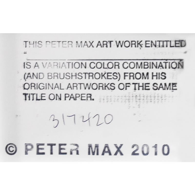 "Better World" is a one-of-a-kind acrylic mixed media on paper, hand signed by Peter Max. This piece comes custom framed. Includes Letter of Authenticity from Peter Max Studios and bears registration number inverso (317420). Measures approx. 35" x 47" (fr