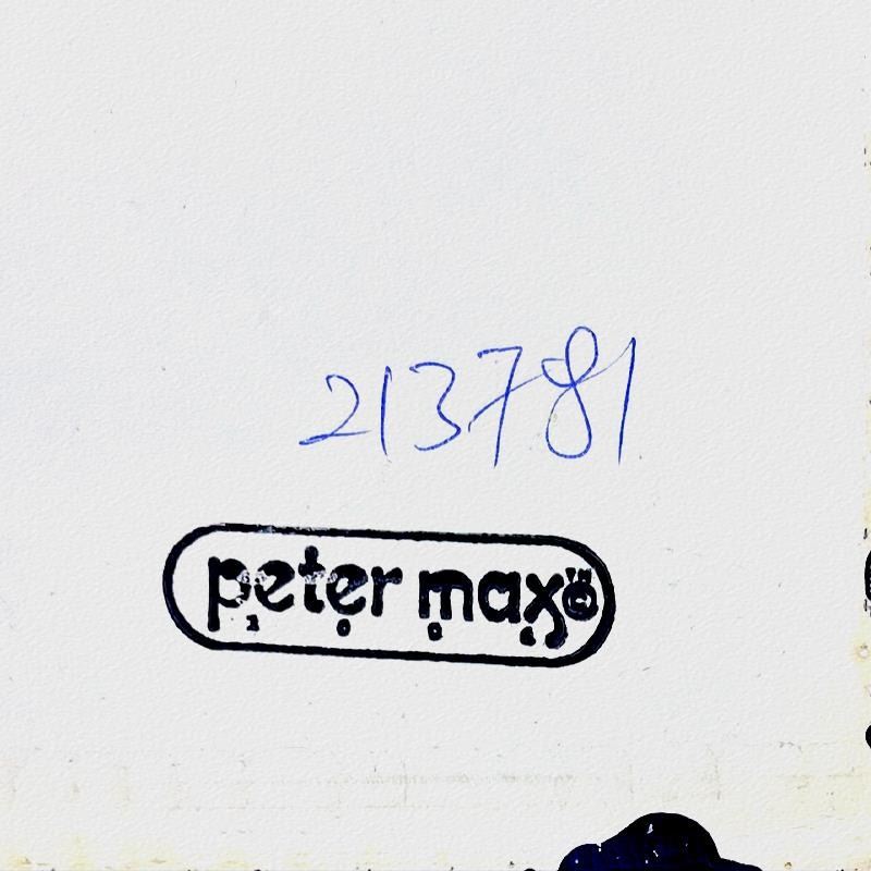 "Better World" is a one-of-a-kind mixed media on paper, hand signed by Peter Max. The piece comes custom framed with a backside cutout to display Peter Max Studio registration number 213781 certifying authenticity. Measures approximately 35" x 29" (frame), 24" x 18" (image). This item requires special handling and may have a longer than usual turnaround.