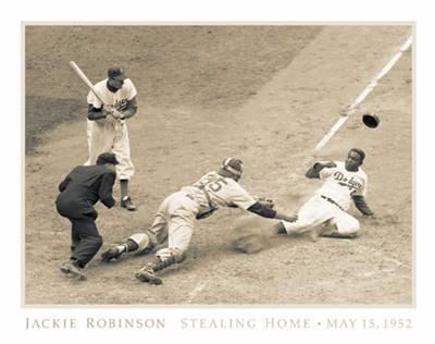Artist: AnonymousOrigin: Bettmann Archive Title: Jackie Robinson Stealing HomeDate: May 18, 1952 Medium: Print Paper Size: 22 x 28" Image Size: 17 7/8 x 24 7/8"
