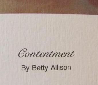 Betty Allison Print "Contentment" By Betty Allison, Texas Artist No Longer Painting Repro of 1979 Work 8" by 10" Work On 13" by 11" Stock New Old Stock from Closed Houston Art and Frame Shop Ready to Mat or Frame Rare Earlier Work
