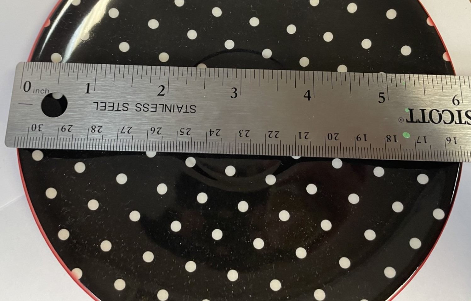 Black and white polka dot saucer, in original packaging
