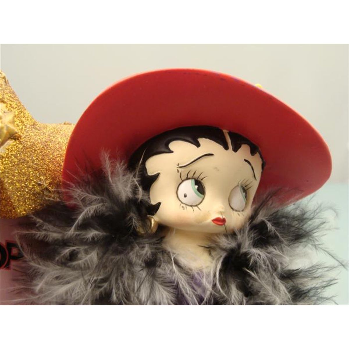 All you need is a 4 x 6 photo, and you can be a star! Put one inside this star shaped picture frame, all glittery gold, with Betty Boop standing next to it, in a black and white feather boa. This display is 8" x 6" and it includes fold-out stand. It is in excellent condition. The item number is 6994 from Westland Giftware. * Someone will look as glamorous as Betty Boop inside this fabulous little picture frame! * * This item comes from the estate of a Betty Boop collector. Please see our other wonderful Betty Boop collectibles too!