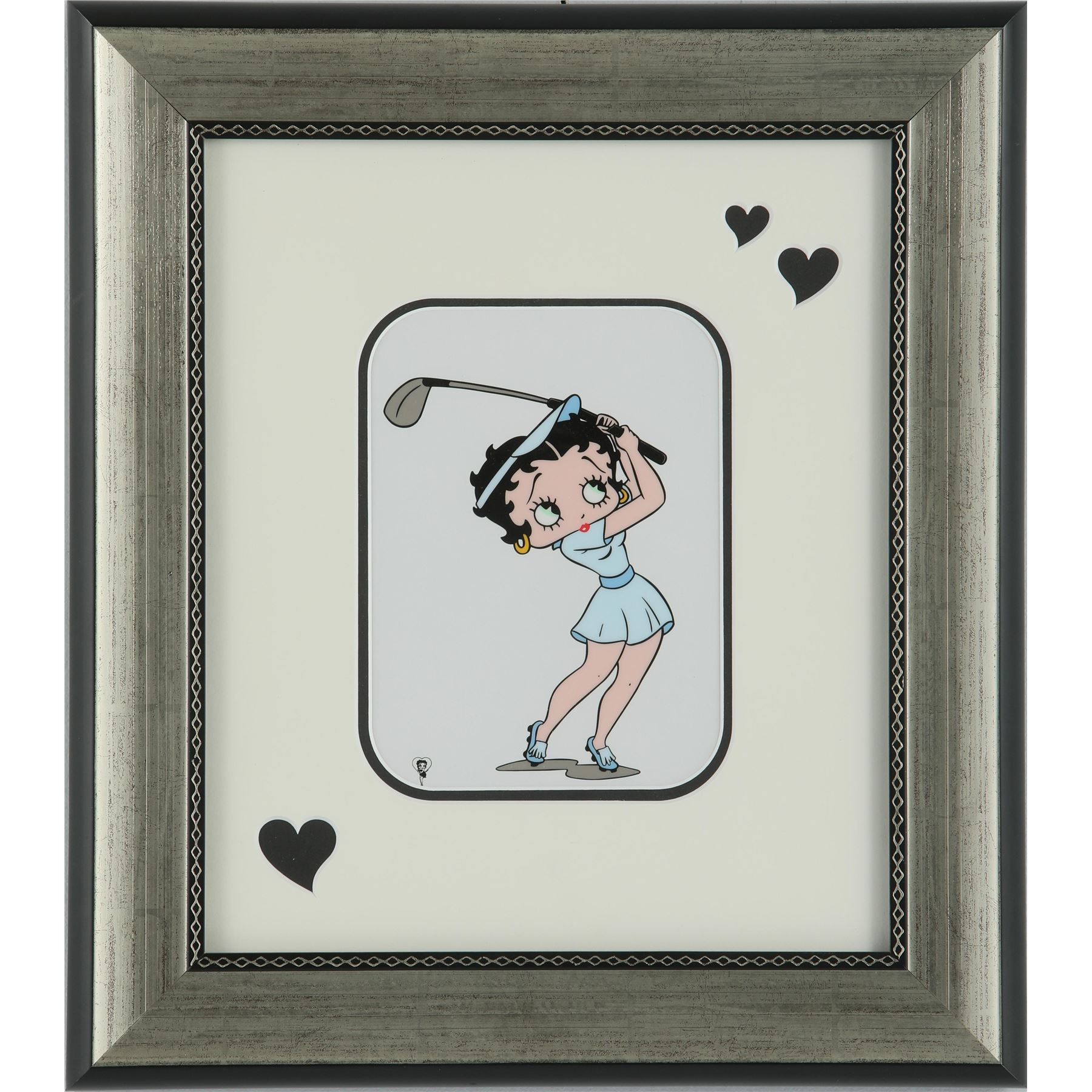 Betty Boop open edition framed print. This piece has been professionally double matted, and custom framed under glass. Image- 7 1/2" x 5 1/2". Frame- 16 3/4" x 14 3/4".