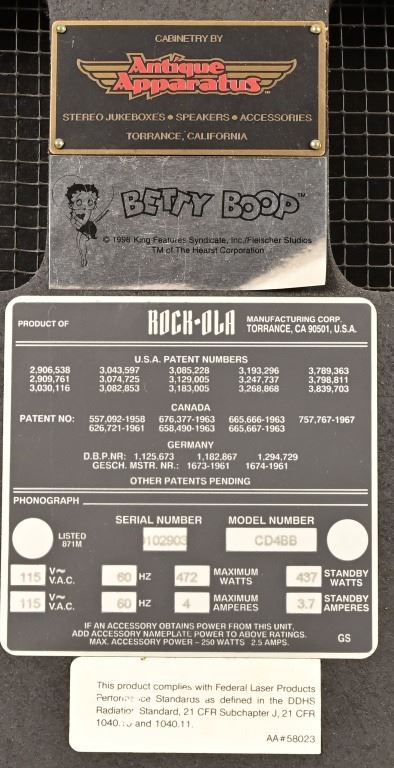 Scarce Betty Boop Rockola Juke Box, created by Frank Caruso/ Fleischer Studios. Plays CD's