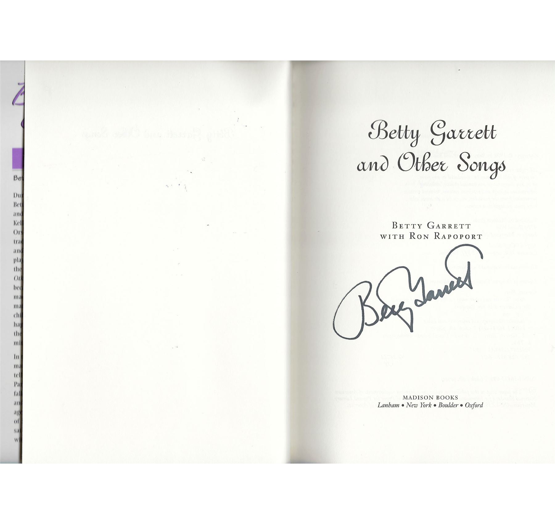 Betty Garrett and Other Songs: A Life on Stage and Screen signed book autographed by Betty Garrett