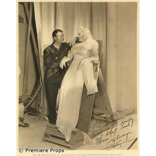 From the Westmore collection comes this studio publicity shot of Wally Westmore and Betty Grable. This photo is autographed by Grable to Wally Westmore in 1937. Measures 8"x10". A great addition to any movie memorabilia collection! (WSM2004)