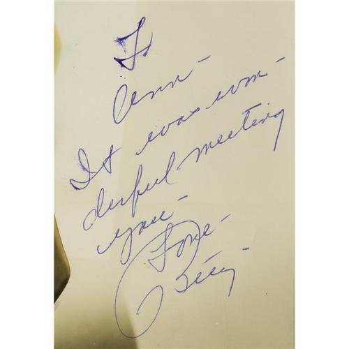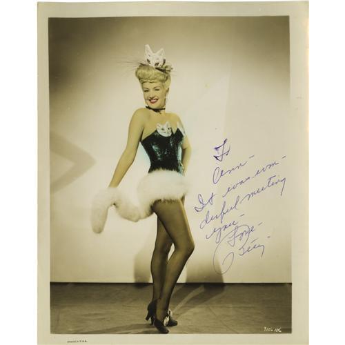 <B>Betty Grable Signed Photo.</B></I> A color 8" x 10" glossy of the actress, inscribed and signed by her in blue ink. In Very Fine to Excellent condition with mild tanning.<BR><BR><b>Shipping:</b> Flat Material, Small (<a target="_blank" href="http://www.heritageauctions.com/common/shipping.php">view shipping information</a>) <BR><BR><B>Important notic