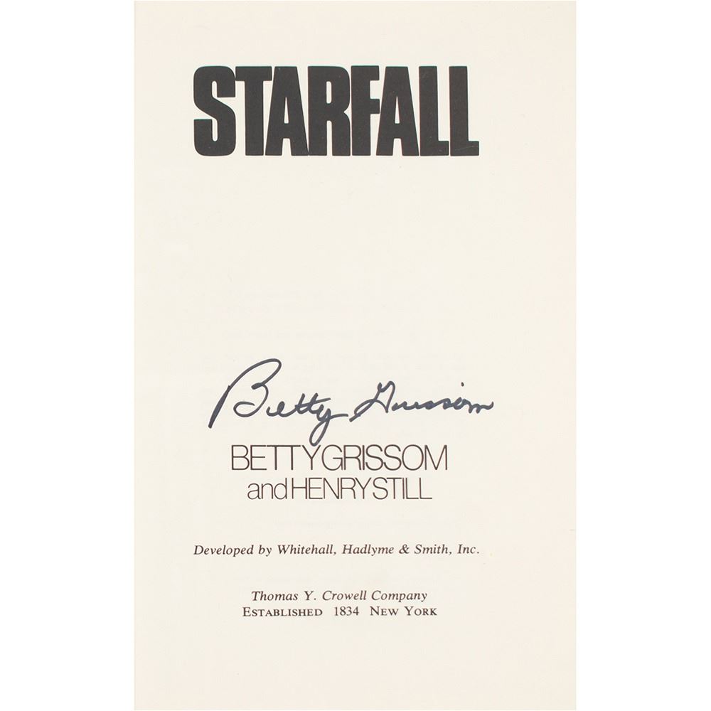 Signed book: Starfall by Betty Grissom and Henry Still. First edition. NY: Thomas Y. Crowell Company, 1974. Hardcover with dust jacket, 6.25 x 9.25, 276 pages. Signed on the title page by Betty Grissom. In fine condition, with some scuffing and edge chipping to the dust jacket. A desirable first edition signed by the wife of Gus Grissom.
