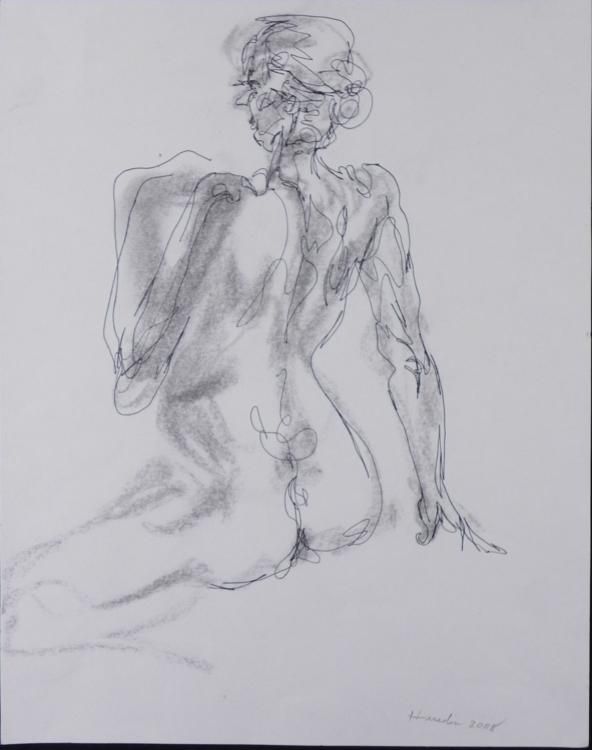 This is an original two sided drawing of a seated nude female, with shading and light evoking the form of the body. The other side appears to be unfinished. * * * Artist: Elizabeth HerediaSignature: "Heredia," in pencil, lower rightMedium: Charcoal and ink on paperSheet size: 11 x 14 inches Year: 2008Condition: Excellent Certificate of Authenticity: Included * Midwest Estate Buyers has been entrusted by the estate of Elizabeth (Betty) Heredia (Shapiro) Snyder Rees to offer her personal artwork for public sale. Due to the rapidity that Elizabeth's artwork was sold commercially, this represents a treasure trove * of her personal work as submitted by her son. It was her wish and legacy that others should enjoy what she enjoyed. * * * * * Elizabeth's previous work was sold as rapidly as it became available. We consider this a unique opportunity to take recognition of an enormous talent. Her personal portfolios have now been opened up to reveal a variety of marvelous work, full of color * and expression. * * As in the past, her work has appreciated considerably with time. * * Betty was a multi-dimensional artist. She was well versed in classic oil painting, water color, wax pencil, charcoal, sumi ink, drawing, hand made paper sculpture, paper mache, clay, wood, marble, printmaking, wood cuts, linoleum block, etching, monotype, serigraph, * and multi-media silk screen. * Elizabeth attended the Tyler School of Art at Temple University, and studied under the founder, Boris Blai, and printmaker Arthur Flourie. * * * * * Her work was first shown in California at Stanford University Museum of Art on campus. Many pieces were gifted to museums, including the Palace of the Legion of Honor, San Francisco, CA; Oakland Museum, Oakland, CA; Grand Rapids Museum of Art, Grand Rapids, * MI; and according to the estate, the National Museum of American History Art Smithsonian Institution, Washington, DC. She received a deed of gift, certificate number 26800, dated 8/17/2001. * * Betty's work was known on the San Francisco Peninsula through the San Francisco Women Artists and Bay Area Printmakers Society and was juried into the California State Fair in 1956 and 1957. Betty taught at the Pacific Grove Art Center, and the Monterey * Museum of Art, and also had exhibits of her work at these fine institutions. She was featured in a one person show at the Cherry Foundation in Carmel. * * She was compared to the then greatest living Cubist artist Richard Diebenkorn. Gehan Salinger, art critic of the San Francisco Chronicle for 25 years, referred to Elizabeth as "an unqualified genius." * * * Her art has sold in galleries in Amsterdam and Barcelona to Europeans for their personal collections for many years. She had a solo show in Tokyo, Japan, and another in Denmark. * * * A few of her pieces can be found in public art schools. Also, an oil painting of a marching band is in a special school for the deaf in Daley City, California. * * Betty passed away at the age of 91. * * She left behind her wonderful collection of original art. We are glad to bring it to you at what we consider to be very competitive opening bids for such fine artwork. * * *