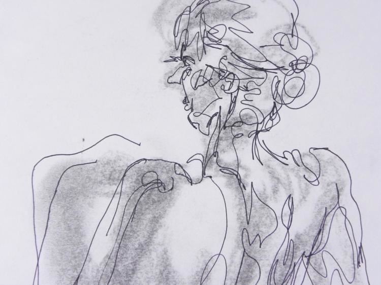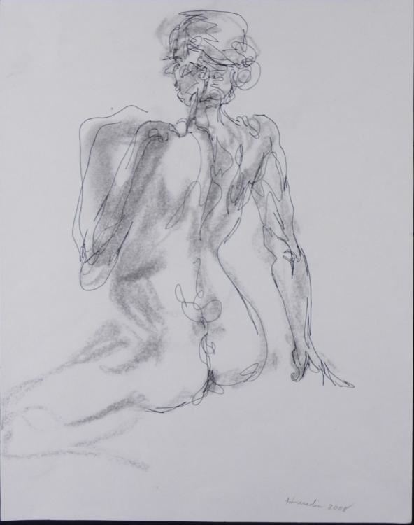 This is an original two sided drawing of a seated nude female, with shading and light evoking the form of the body. The other side appears to be unfinished. Artist: Elizabeth HerediaSignature: "Heredia," in pencil, lower rightMedium: Charcoal and ink on paperSheet size: 11 x 14 inches Year: 2008Condition: Excellent Certificate of Authenticity: Included Midwest Estate Buyers has been entrusted by the estate of Elizabeth (Betty) Heredia (Shapiro) Snyder Rees to offer her personal artwork for public sale. Due to the rapidity that Elizabeth's artwork was sold commercially, this represents a treasure trove of her personal work as submitted by her son. It was her wish and legacy that others should enjoy what she enjoyed. Elizabeth's previous work was sold as rapidly as it became available. We consider this a unique opportunity to take recognition of an enormous talent. Her personal portfolios have now been opened up to reveal a variety of marvelous work, full of color and expression. As in the past, her work has appreciated considerably with time. Betty was a multi-dimensional artist. She was well versed in classic oil painting, water color, wax pencil, charcoal, sumi ink, drawing, hand made paper sculpture, paper mache, clay, wood, marble, printmaking, wood cuts, linoleum block, etching, monotype, serigraph, and multi-media silk screen. Elizabeth attended the Tyler School of Art at Temple University, and studied under the founder, Boris Blai, and printmaker Arthur Flourie. Her work was first shown in California at Stanford University Museum of Art on campus. Many pieces were gifted to museums, including the Palace of the Legion of Honor, San Francisco, CA; Oakland Museum, Oakland, CA; Grand Rapids Museum of Art, Grand Rapids, MI; and according to the estate, the National Museum of American History Art Smithsonian Institution, Washington, DC. She received a deed of gift, certificate number 26800, dated 8/17/2001. Betty's work was known on the San Francisco Peninsula through the San Francisco Women Artists and Bay Area Printmakers Society and was juried into the California State Fair in 1956 and 1957. Betty taught at the Pacific Grove Art Center, and the Monterey Museum of Art, and also had exhibits of her work at these fine institutions. She was featured in a one person show at the Cherry Foundation in Carmel. She was compared to the then greatest living Cubist artist Richard Diebenkorn. Gehan Salinger, art critic of the San Francisco Chronicle for 25 years, referred to Elizabeth as "an unqualified genius." Her art has sold in galleries in Amsterdam and Barcelona to Europeans for their personal collections for many years. She had a solo show in Tokyo, Japan, and another in Denmark. A few of her pieces can be found in public art schools. Also, an oil painting of a marching band is in a special school for the deaf in Daley City, California. Betty passed away at the age of 91. She left behind her wonderful collection of original art. We are glad to bring it to you at what we consider to be very competitive opening bids for such fine artwork.