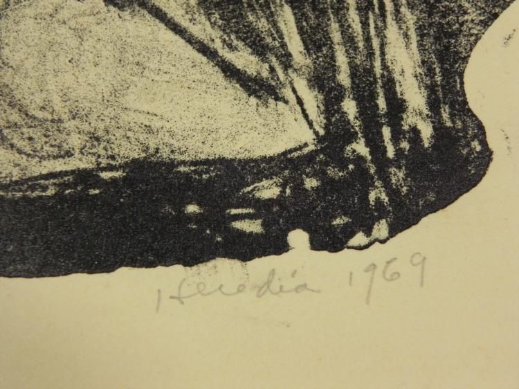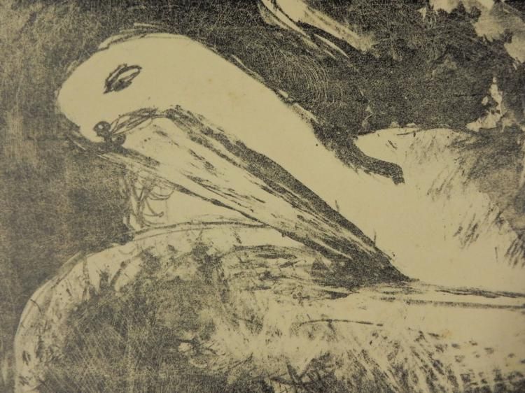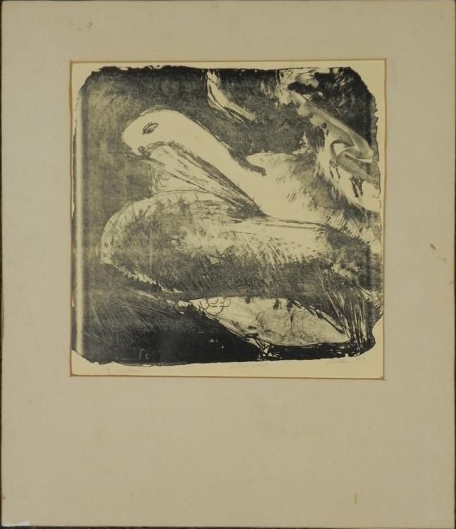 This is a pelican, and apparently a French pelican. Artist: Betty Snyder ReesSignature: "Betty Rees," in pencil, lower rightTitle: A ToiletteMedium: Print on cream color paperSheet size: approximately 12 x 13 inches Edition: Artist's ProofYear: 1969Presentation: Matted in creamMatte size: 14 1/4 x 16 1/2 inchesCondition: Very goodCertificate of Authenticity: Included Midwest Estate Buyers has been entrusted by the estate of Elizabeth (Betty) Heredia (Shapiro) Snyder Rees to offer her personal artwork for public sale. Due to the rapidity that Elizabeth's artwork was sold commercially, this represents a treasure trove of her personal work as submitted by her son. It was her wish and legacy that others should enjoy what she enjoyed. Elizabeth's previous work was sold as rapidly as it became available. We consider this a unique opportunity to take recognition of an enormous talent. Her personal portfolios have now been opened up to reveal a variety of marvelous work, full of color and expression. As in the past, her work has appreciated considerably with time. Betty was a multi-dimensional artist. She was well versed in classic oil painting, water color, wax pencil, charcoal, sumi ink, drawing, hand made paper sculpture, paper mache, clay, wood, marble, printmaking, wood cuts, linoleum block, etching, monotype, serigraph, and multi-media silk screen. Elizabeth attended the Tyler School of Art at Temple University, and studied under the founder, Boris Blai, and printmaker Arthur Flourie. Her work was first shown in California at Stanford University Museum of Art on campus. Many pieces were gifted to museums, including the Palace of the Legion of Honor, San Francisco, CA; Oakland Museum, Oakland, CA; Grand Rapids Museum of Art, Grand Rapids, MI; and according to the estate, the National Museum of American History Art Smithsonian Institution, Washington, DC. She received a deed of gift, certificate number 26800, dated 8/17/2001. Betty's work was known on the San Francisco Peninsula through the San Francisco Women Artists and Bay Area Printmakers Society and was juried into the California State Fair in 1956 and 1957. Betty taught at the Pacific Grove Art Center, and the Monterey Museum of Art, and also had exhibits of her work at these fine institutions. She was featured in a one person show at the Cherry Foundation in Carmel. She was compared to the then greatest living Cubist artist Richard Diebenkorn. Gehan Salinger, art critic of the San Francisco Chronicle for 25 years, referred to Elizabeth as "an unqualified genius." Her art has sold in galleries in Amsterdam and Barcelona to Europeans for their personal collections for many years. She had a solo show in Tokyo, Japan, and another in Denmark. A few of her pieces can be found in public art schools. Also, an oil painting of a marching band is in a special school for the deaf in Daley City, California. Betty passed away at the age of 91. She left behind her wonderful collection of original art. We are glad to bring it to you at what we consider to be very competitive opening bids for such fine artwork.