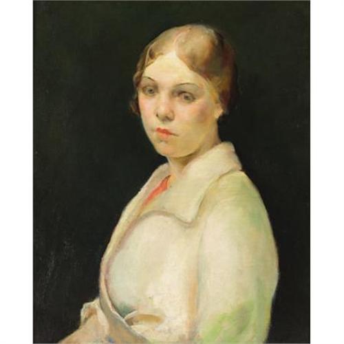 <B>BETTY STRAUSS (American, b. 1905)</B></I><BR><I>Portrait of a Woman</B></I><BR>Oil on canvas<BR>24 x 20 inches (61.0 x 50.8 cm)<BR>Inscribed verso: <I>Betty Strauss</B></I><BR>