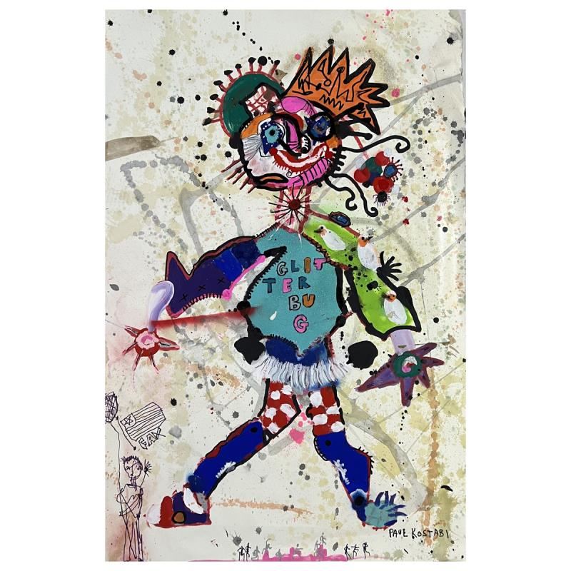 "Between the Internet and the Madness" is an original painting, mixed media on paper by Paul Kostabi. The piece comes hand signed by the artist and with a letter of authenticity. Measures approximately 40" x 23".
