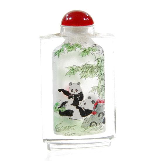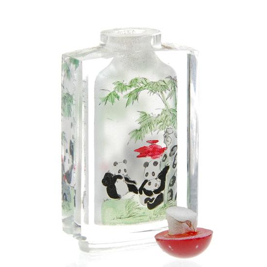 Pandas scene painted from inside, 3"
