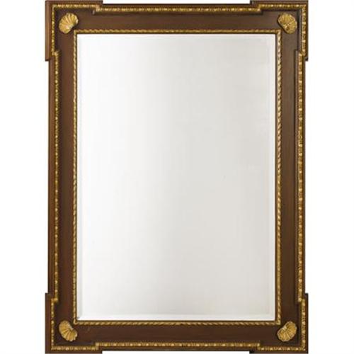 <B>Beveled Mirror</B></I> <BR>Framed in brown stained wood with gilt edge and gilt shell design in corners; the frame 4-1/2 inches wide<BR>48 x 38-1/2 inches (overall)<BR><BR><b>Shipping:</b> Requires 3rd Party Shipping (<a target="_blank" href="http://www.heritageauctions.com/common/shipping.php">view shipping information</a>)