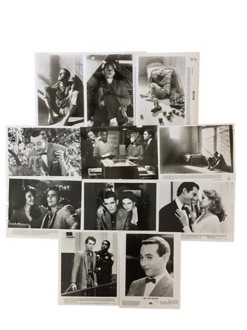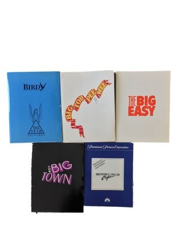 Collection of 5 press kits with black and white publicity stills included, sized mainly 8x10's from various movie studios (circa 1980's). From Tri Star Pictures, "Birdy"(1984) starring Matthew Modine as Birdy, Nicolas Cage as Sergeant Al, and Sandy Baron as Mr. Columbato, 14 stills included. From Paramount Corporation "Big Top Pee Wee" (1988), starring Paul Reubens as Pee Wee Herman, Kris Kristofferson as Mace Montana, and Susan Tyrrell as Midge Montana, 15 stills included. From Columbia Pictures "The Big Town", (1987) starring Matt Dillion as J.C. Cullen, Diane Lane as Lorry Dane, and Tommy Lee Jones as George Cole, 4 still included. From Columbia Pictures "The Big Easy" (1986) starring Dennis Quaid as Detective Lieutenant Remy McSwain, Ellan Barkin as a.D.A Ann Osbourne, and Ned Beatty as Captain Jack Kellom, includes 4 stills. From Paramount Pictures "Beverly Hills Cop", (1984), starring Eddie Murphy as Axel Foley, Judge Reinhold as Detective Billy Rosewood, and John Ashton as Sergent John Taggart, includes 4 stills.